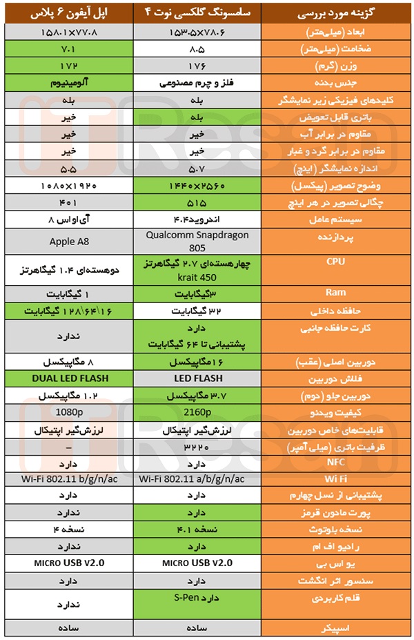 سامسونگ گلکسی نوت۴ ، اپل آیفون 6 پلاس را خورد .