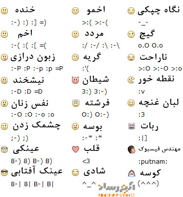 اگر معمولا آنلاین هستید و زمان زیادی را به چت کردن می‌پردازید، یا وقت زیادی را در شبکه‌های اجتماعی مانند فیس‌بوک می‌گذرانید به طور حتم بسیار پیش می‌آید که می‌خواهید احساسات خود را به صورت خلاصه و مفید و با استفاده از شکلک‌هایی موسوم به Smiley یا Emoticon بیان کنید. اگر اطلاع داشته باشید تعداد این صورتک‌ها آنقدر زیاد است که به خاطر سپردن تمامی آنها نه تنها مشکل بلکه بعضا بی فایده هم هست. از این جهت سعی کردیم تعدادی از این صورت‌ها را که کاربرد زیادی دارند را جمع آوری کنیم. در کنار این نحوه تولید هر شکلک و معنای آن را نیز به فارسی ذکر کردیم تا استفاده از آنها هر چه سهل‌تر گردد.