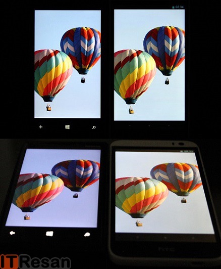 طبق عادت همیشگی نگاهی نیز از زوایا به نمایشگر آن انداختیم و به جز رنگ پریدگی جزئی در برخی تصاویر، عیب دیگری بر نمایشگر غولِ میان رده اچتیسی وارد نبود پس متوجه شدیم که با یک نمایشگر خوب طرف هستیم. برای اینکه بدانید تعریف و تمجیدهای ما از این مدل بی مورد نیست، آن را در کنار پرچمدار سابق نوکیا با نام لومیا 920 قرار دادیم و چند عکس یادگاری هنگامی که هر دو با آخرین میزان روشناییشان مشغول نشان دادن تصاویری مشابه بودند، انداختیم که حاصل کار را در زیر مشاهده میکنید. ( نیاز به گفتن نیست اما نمایشگر سمت راست مربوط با دیزایر 616 است).