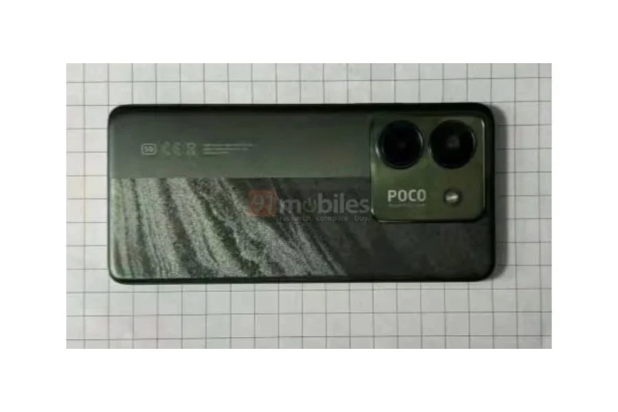 تصاویر فاش شده از گوشی نشاندهنده جنبههای مختلف طراحی آن هستند. اینبار ماژول دوربین نواریشکل عریض پوکو M6 پرو حذف شده و در عوض از یک ماژول مربعیشکل معمولتر شامل تنها دو سنسور دوربین استفاده شده است. پنل پشتی گوشی دارای الگوی دو رنگ سبز مانند سنگ مرمر است. با اینحال گزینههای رنگی دیگری نیز احتمالا در راه خواهند بود.