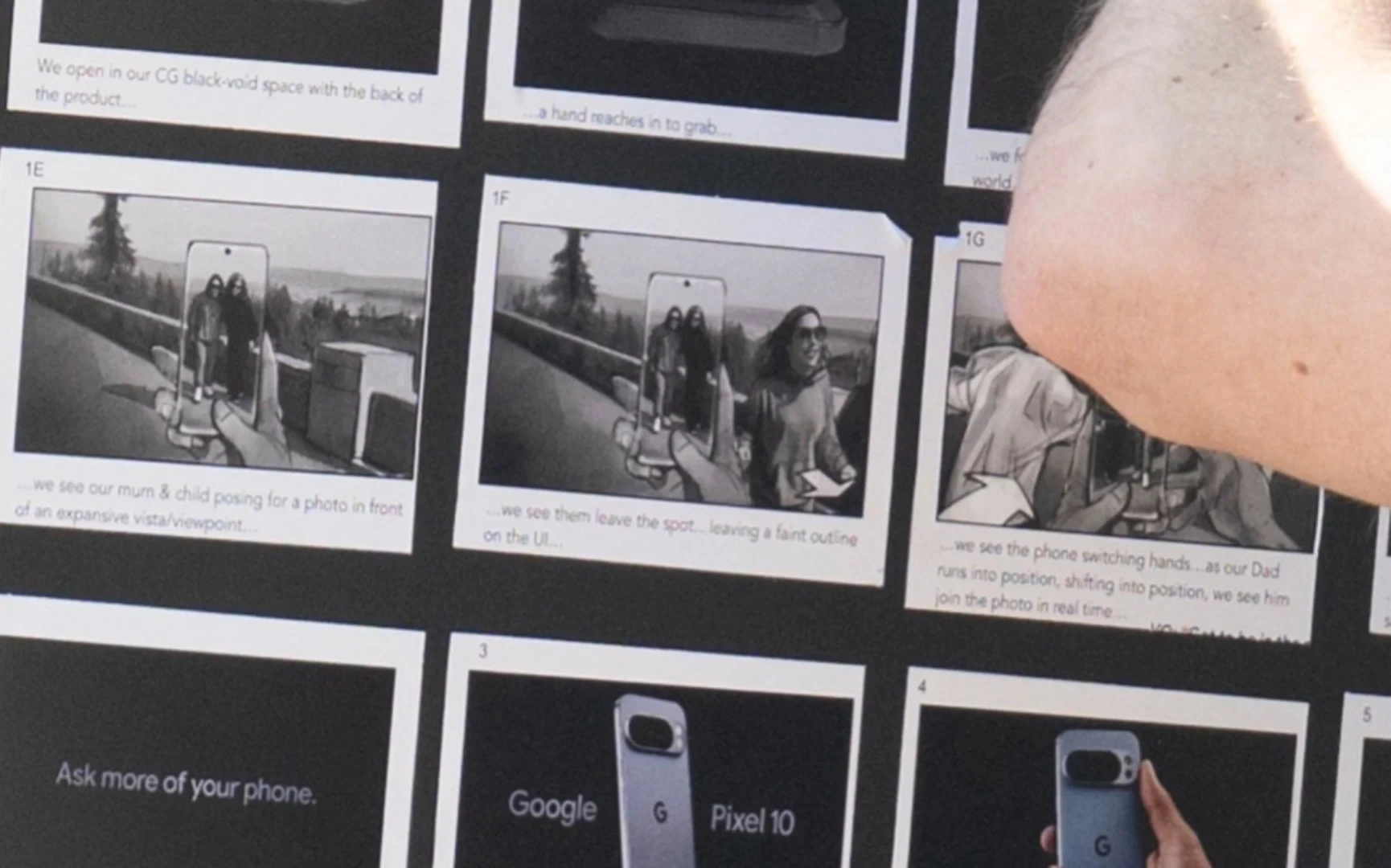 گروه فیلمبرداری برای پنهان کردن هویت گوشی، تلاش زیادی به خرج نداده و فردی که بهطور اتفاقی وارد صحنه میشود نیز به استوریبورد (متن تصویری از تمامی صحنههای تشکیلدهنده کلیپ ویدیویی) نگاهی میاندازد. گوگل سری پیکسل 10 خود را با یک ویژگی جدید برای دوربین عرضه میکند؛ قابلیتی که به کاربران امکان میدهد تا چندین نفر را به یک عکس اضافه کنند.
