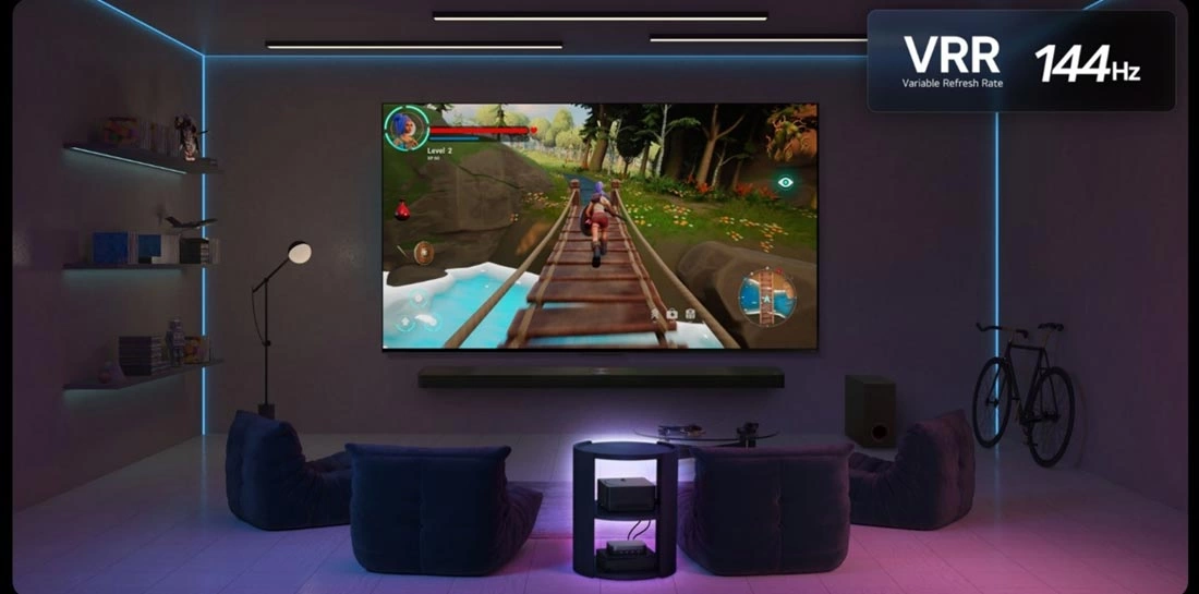 گیمرها میدانند که سرعت پاسخگویی و نرخ نوسازی بالا چقدر در هر لحظه حساسیت دارد. تلویزیون QNED evo با رفرشریت تا ۱۶۵ هرتز، پشتیبانی از VRR (نرخ نوسازی متغیر) و حالت ALLM (تاخیر کم خودکار)، تجربهای نرم و بیگسست فراهم میکند. این مجموعه همچنین سازگار با فناوری AMD FreeSync Premium است که لرزش تصاویر را در بازیهای سریع از بین میبرد و روانی بصری خاصی را برای گیمرهای رقابتی فراهم میسازد. در کنار این قابلیتها، چهار پورت HDMI 2.1 تضمین میکند که بدون دغدغه بتوانید چند کنسول مختلف یا ساندبار را همزمان به تلویزیون وصل کنید و هیچگاه ناچار به انتخاب نباشید.