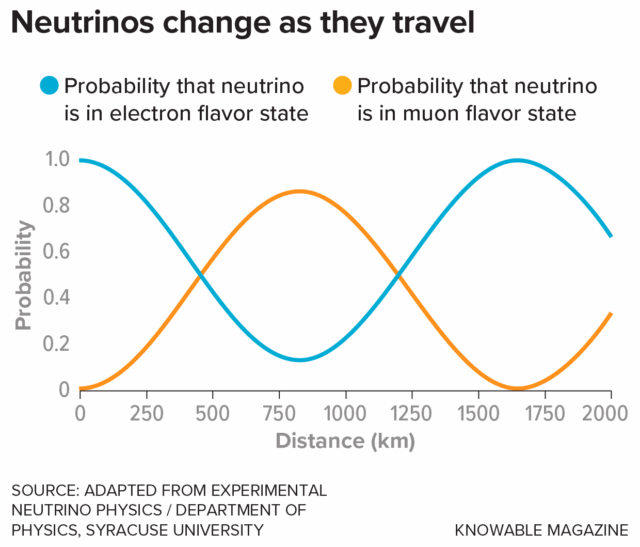 یکی از ویژگیهای مهم نترینوها «نوسان طعمی» است: نترینوها هنگام حرکت میتوانند بین سه طعمِ الکترونی، میونی و تائویی جابهجا شوند. نوسان مستلزم تفاوت جرمی میان طعمها است و به فیزیکدانان امکان میدهد تقارنهای بنیادین طبیعت را آزمایش کنند. اگر در این نوسانها بین نترینوها و ضدنترینوها تفاوتی وجود داشته باشد، یعنی تقارن بار-پاریتی (CP) نقض میشود و این همان نوع نقض تقارنی است که میتواند منجر به افزایش تولید ماده نسبت به پادماده در اوایل کیهان شود.