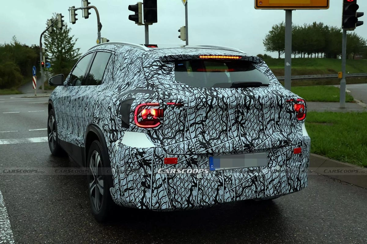همانند تجربهای که در آزمایشهای GLC دیده میشود، تیم تحقیق و توسعه مرسدس با استفاده از پوشش سخت زیر لفافهی نقشه مخفی، سعی کرده است خطوط بدنه را بهگونهای پنهان کند. ظاهراً از این پوشش برای ایجاد یک ساختار نماشِ بیرونِ چراغ عقب و یک نمرهی برجسته زیر پنجرهی عقب نیز بهره گرفتهاند. با دقیقنگری در تصاویر، میتوان دریافت که لایه واقعی در محل جداسازی صندوق و ستون عقب نمایان است و شیب تیز کنار پنجره عقب در برخی نقاط وجود ندارد—که با توجه به شباهت با GLC، میتواند طبیعی باشد.