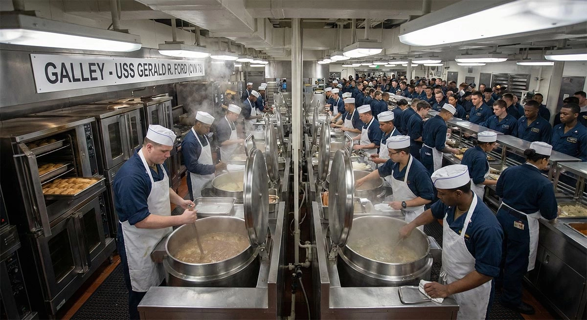 سلامت روان و جسم: در کنار بیمارستان کامل با اتاق عمل و دندانپزشکی، سالنهای ورزشی مجهز در جایجای ناو تعبیه شده است. حفظ روحیه در برابر عارضه “Combat Fatigue” (خستگی رزمی ناشی از محیط بسته و پرفشار) یک اولویت استراتژیک است. اگر روحیه خدمه افت کند، احتمال خطای انسانی در مدیریت یک سیستم ۱۳ میلیارد دلاری بالا میرود.