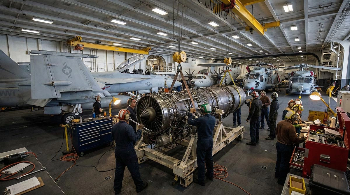 سطح میانی (I – Intermediate): این نقطه قوت فورد است. در دل ناو، کارگاههای تراشکاری، آزمایشگاههای کالیبراسیون الکترونیک و سالنهای تعمیر موتور جت وجود دارد. آنها میتوانند سیستمهای حساس تسلیحاتی یا موتور جنگنده را در وسط اقیانوس تعمیر اساسی کنند.