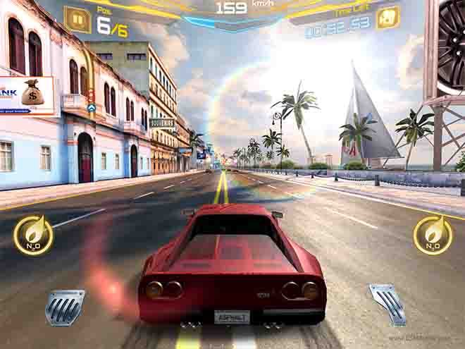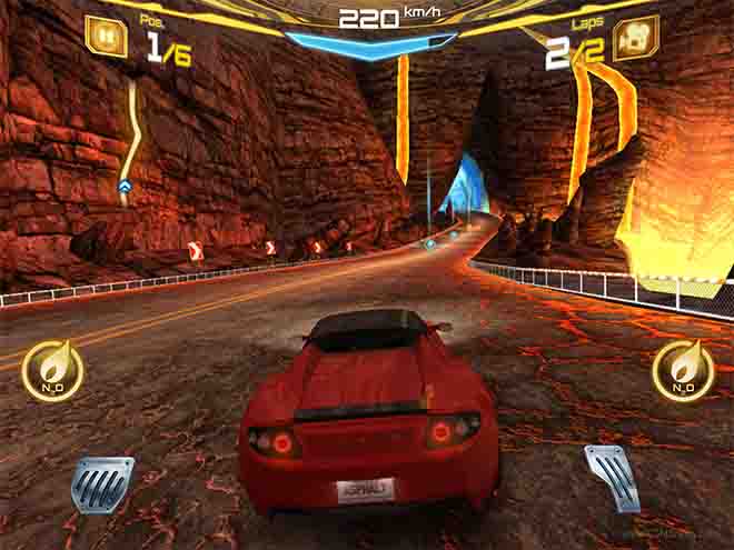 در حین مدت مسابقه و طی کردن مسیر شما بستههای پول و نیتروژن را در مسیر خواهید دید که مطابق معمول با عبور از روی آنها پول یا نیتروژن را به دست خواهید آورد. همچنین برای پرکردن نیتروژن ماشینتان میتوانید به دو راه دیگر نیز روی بیاورید یا با روش محتاطانهتر مثلا دریفت بکشید و یا اینکه به رانندگی خطرناک روی بیاورید. لایی کشیدن! و یا حرکت در سمت چپ جاده اصولا همیشه جواب میدهد (البته فقط در دنیای Asphalt !). نیتروژن خودرویتان در 3 مرحله پر میشود که هر بار با تغییر رنگ جزئی آن معلوم است تا در نهایت از زرد به آبی میرسد. فرض کنید نیتروژن ماشینتان کاملا پر شده است و حالا شما از آن استفاده میکنید و اتفاقا خودروی یکی از رقیبان خود را نیز در جلوی خود میبینید. میدانید در صورت حتی یک تصادف کوچک چه اتفاقی میافتد؟ رقیب بخت برگشته شما با همان یک ضربه و بدون احتیاج به چندین و چندبار کوبیدن ماشین Take down میشود! البته ناگفته نماند که در این حالت کنترل ماشین به واسطه شتابی که از تخلیه نیتروژن به وجود میآید و افکتهای گرافیکی بازی کمی سخت است.