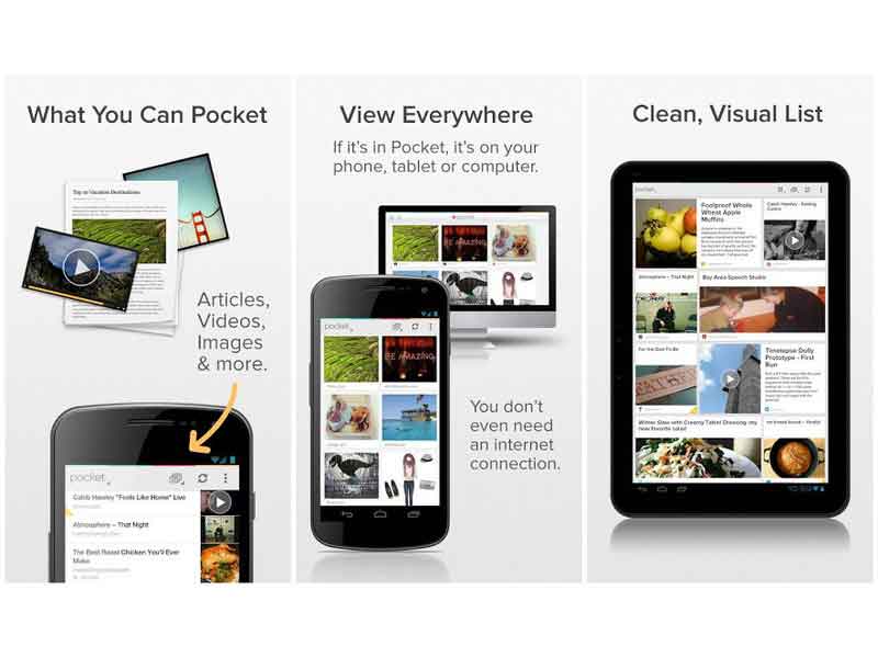 از برترین ابزارهای ذخیره سازی محتوای اینترنت نرمافزار Pocket است. شما به راحتی میتوانید با این افزونه هر متن، عکس یا ویدئویی را که تمایل داشتید ذخیره کنید و بعدا به مطالعه یا مشاهده آن بپردازید. این برنامه به صورت هوشمند قسمت مورد نیاز شما را نگاه داشته و بقیه اطلاعات آن صفحه وب را حذف میکند.
